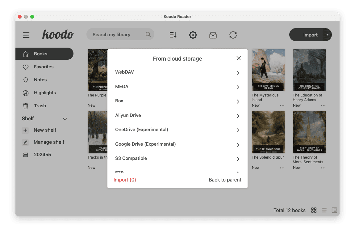 轻松与OneDrive、Google Drive、Dropbox、MEGA、pCloud、Yandex Disk、百度网盘、115网盘、阿里云盘、Box、FTP、SFTP、SMB、WebDAV、对象存储和Docker等流行云服务同步和备份您的阅读数据。